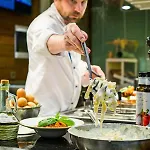 ארוחת בוקר בופה חינם מוגשת בבוקר במסעדה. המלון מזמין את אורחיו לבר קפה כדי להרפות עם משקה.